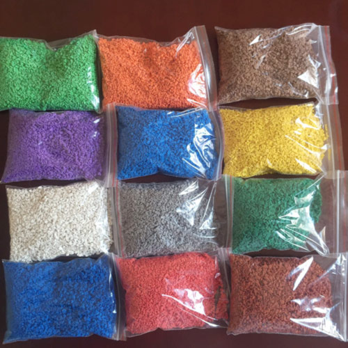 彩色顆粒大小徑約2-4mm,使用運動場專用PU鋪設,并在其表面鋪撒膠粒而成。合成面層具有高能量的物理彈性及高度的抗耐磨性,并且能抵御各類極端氣候狀況:長時間的日照、雨季及冰凍氣候。適用于比賽型專業(yè)場館,體育場或體育中心等場地。